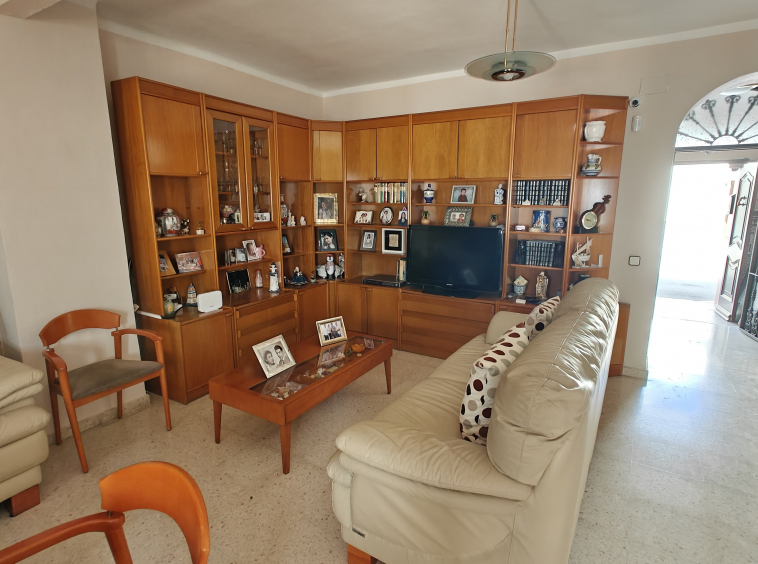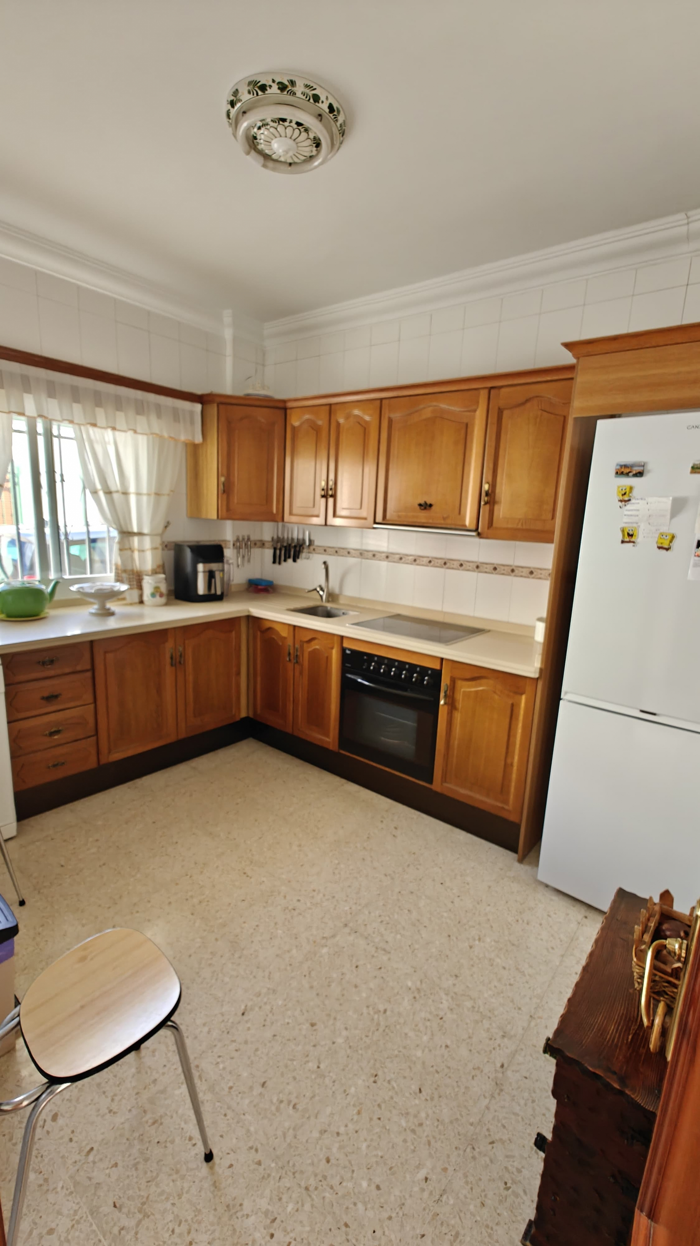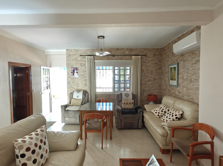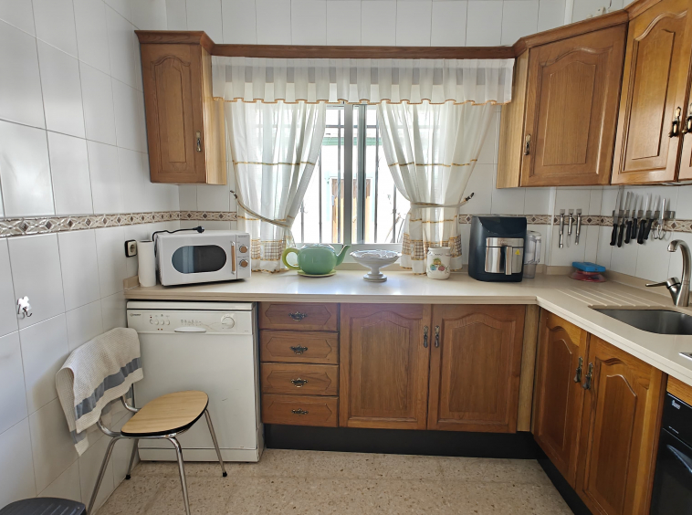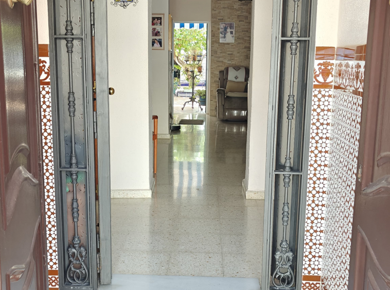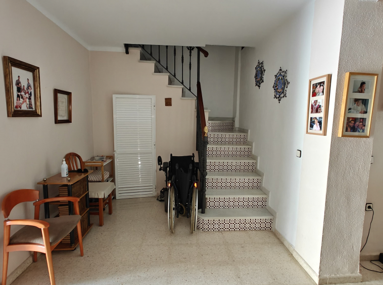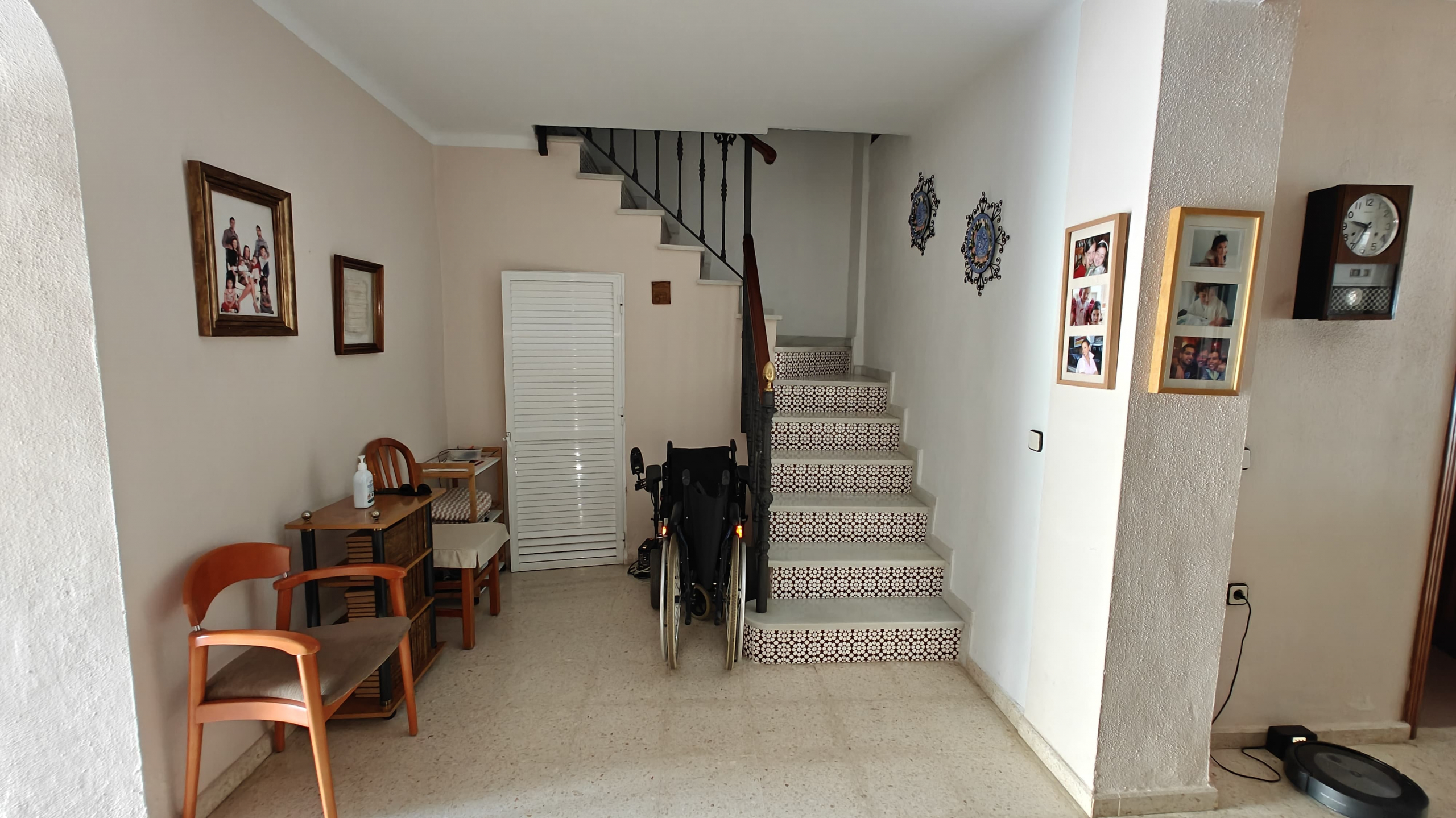 La casa en la planta baja cuenta con 1 habitación, 1 baño completo adaptado para personas con movilidad reducida, cocina bastante amplia y gran salón comedor desde donde accedemos al patio de unos 72m² aproximados con piscina y trastero.