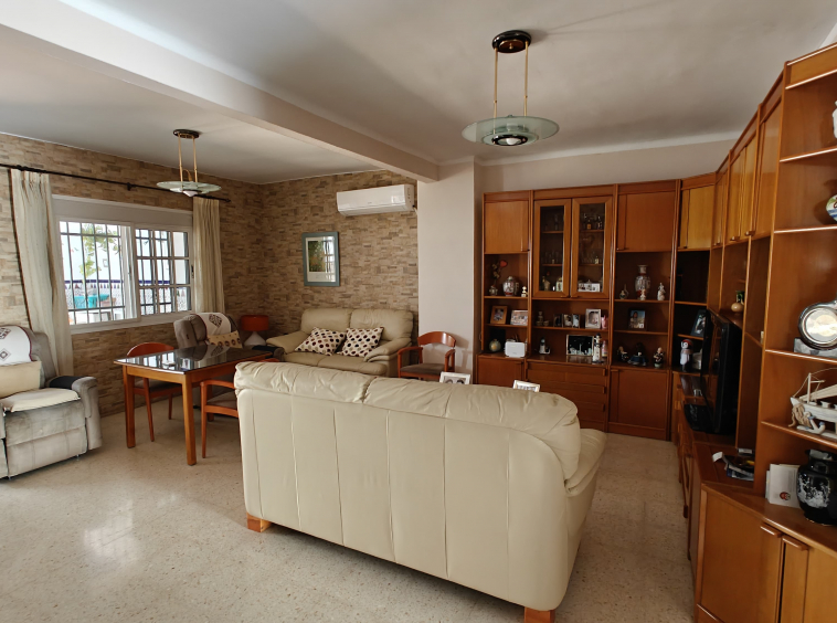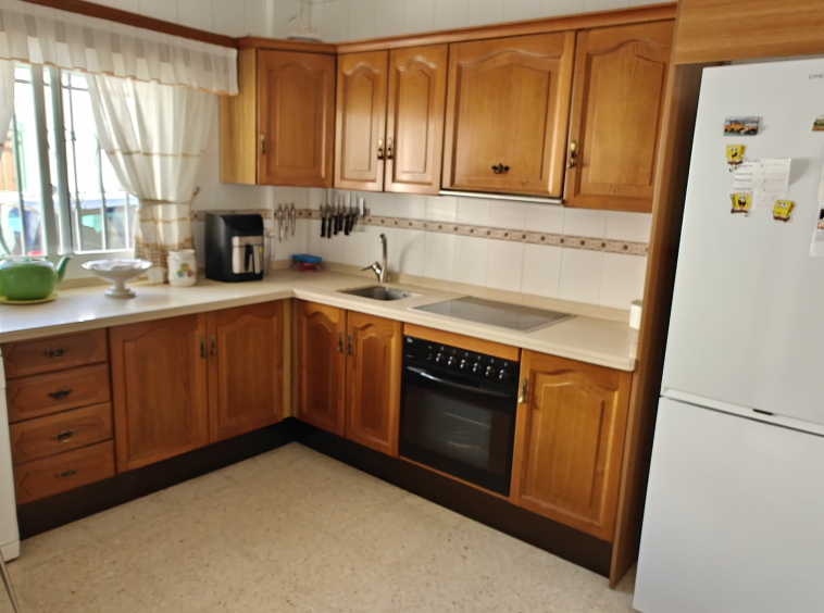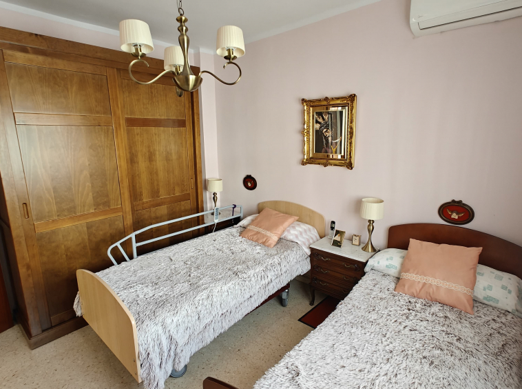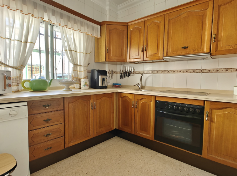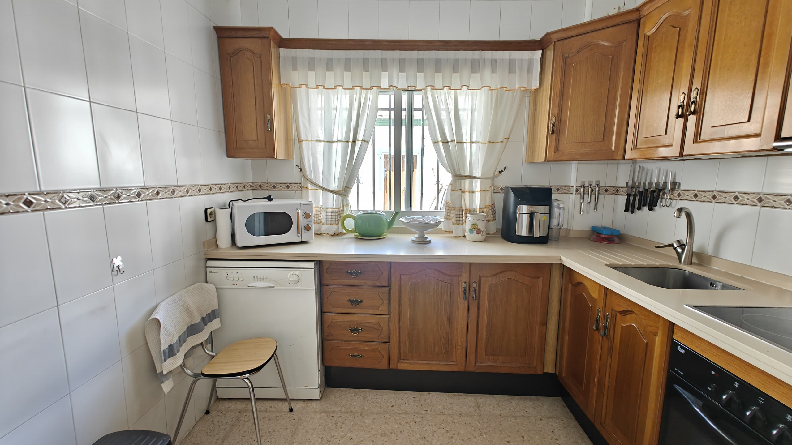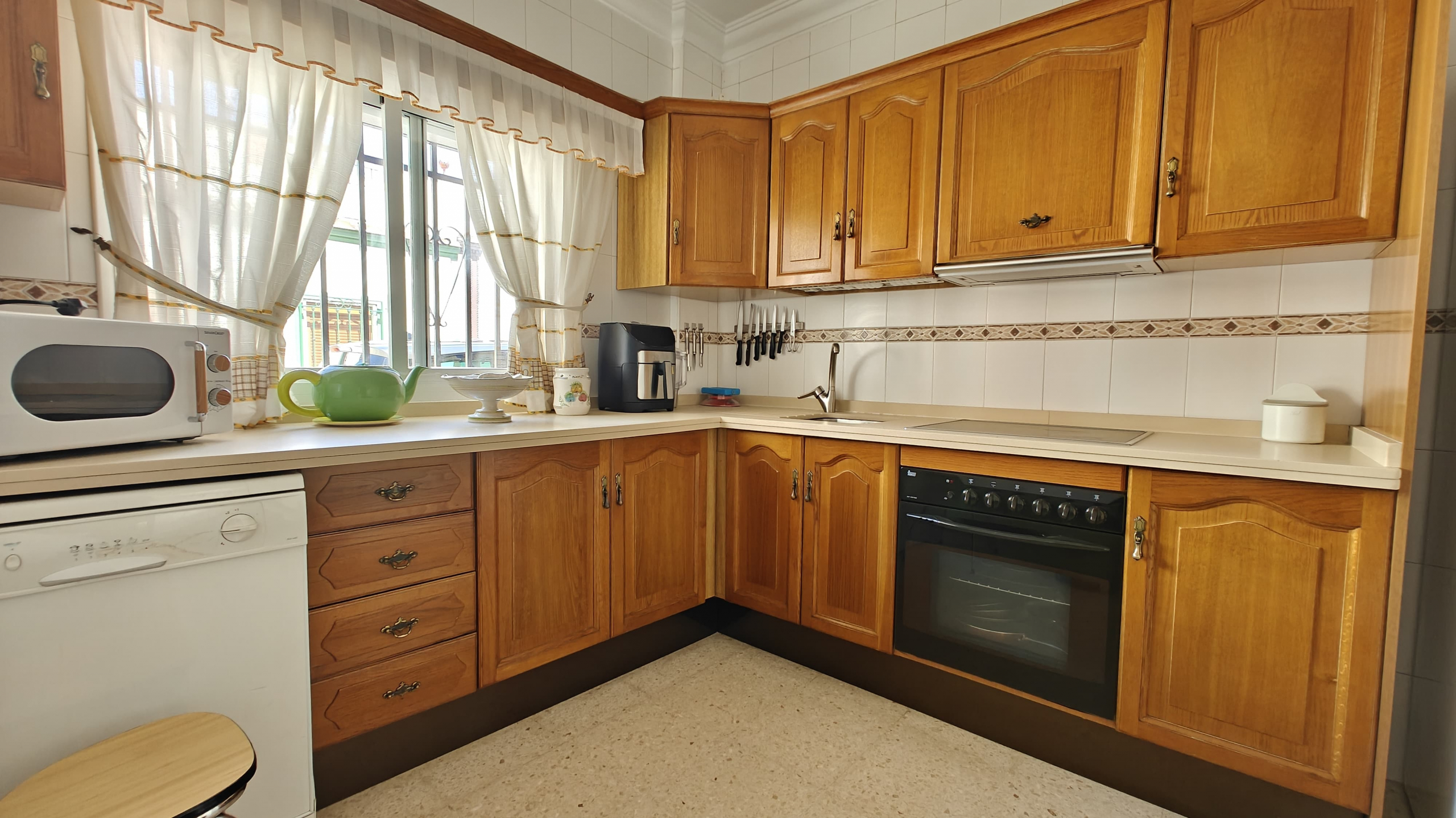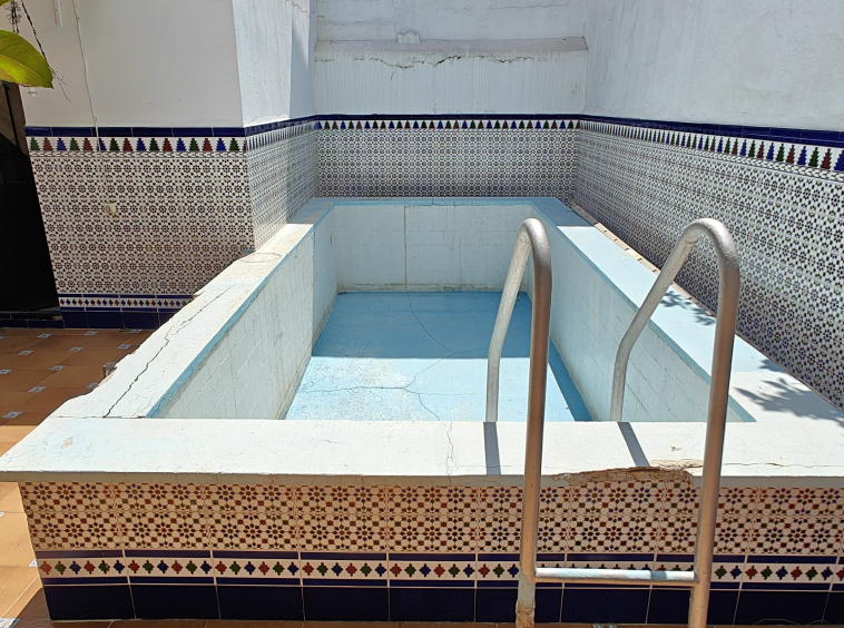 La casa en la planta baja cuenta con 1 habitación, 1 baño completo adaptado para personas con movilidad reducida, cocina bastante amplia y gran salón comedor desde donde accedemos al patio de unos 72m² aproximados con piscina y trastero.